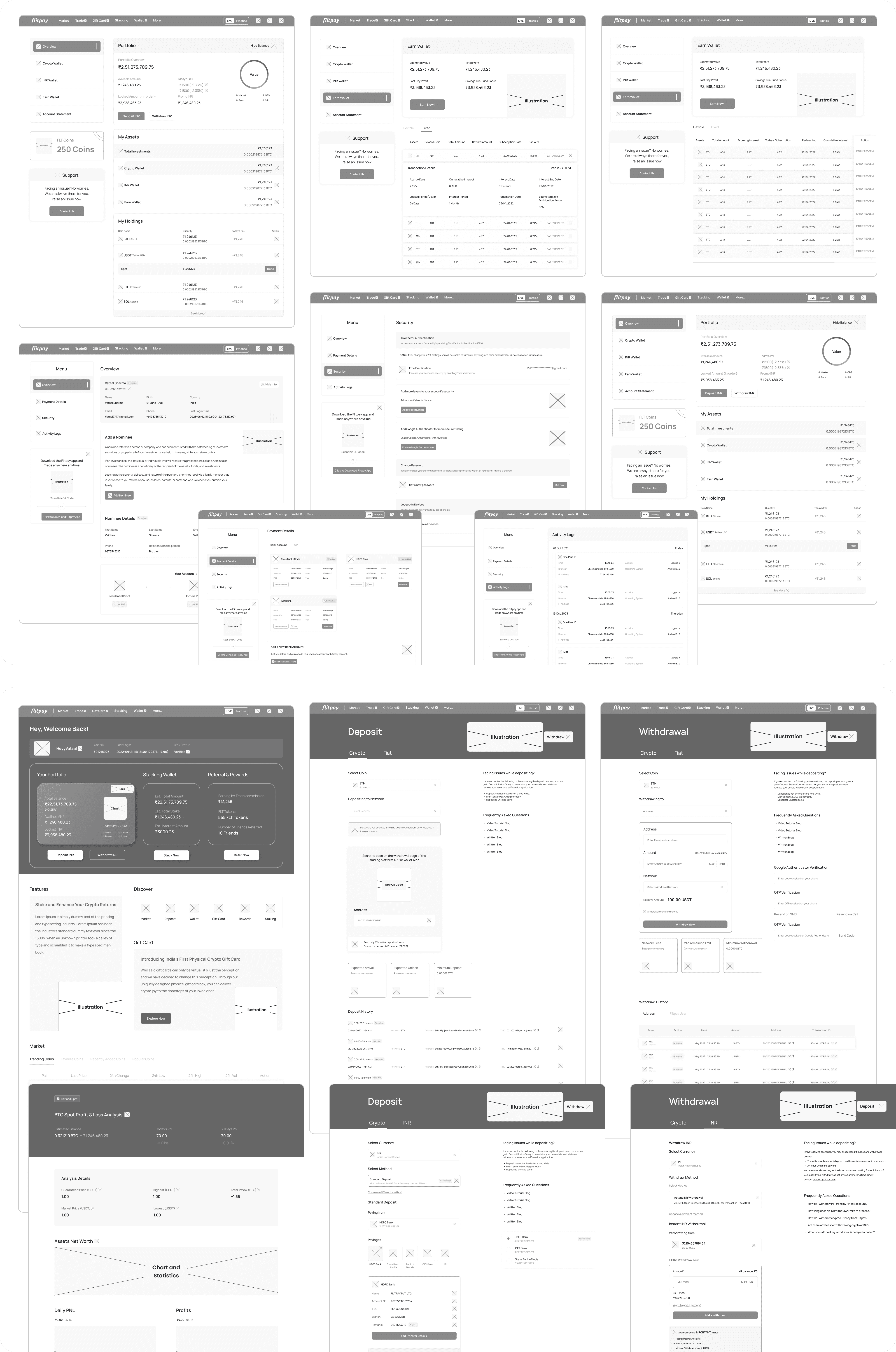 I structured complex flows such as crypto balances, transactions, deposits, and exchanges into intuitive web navigation.