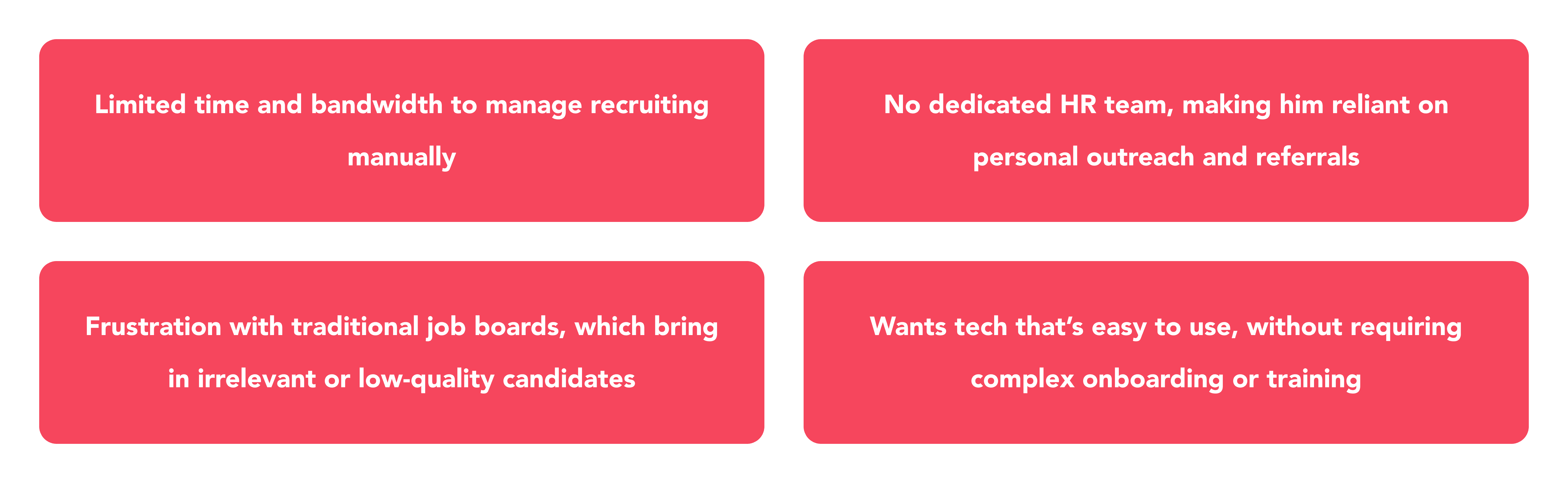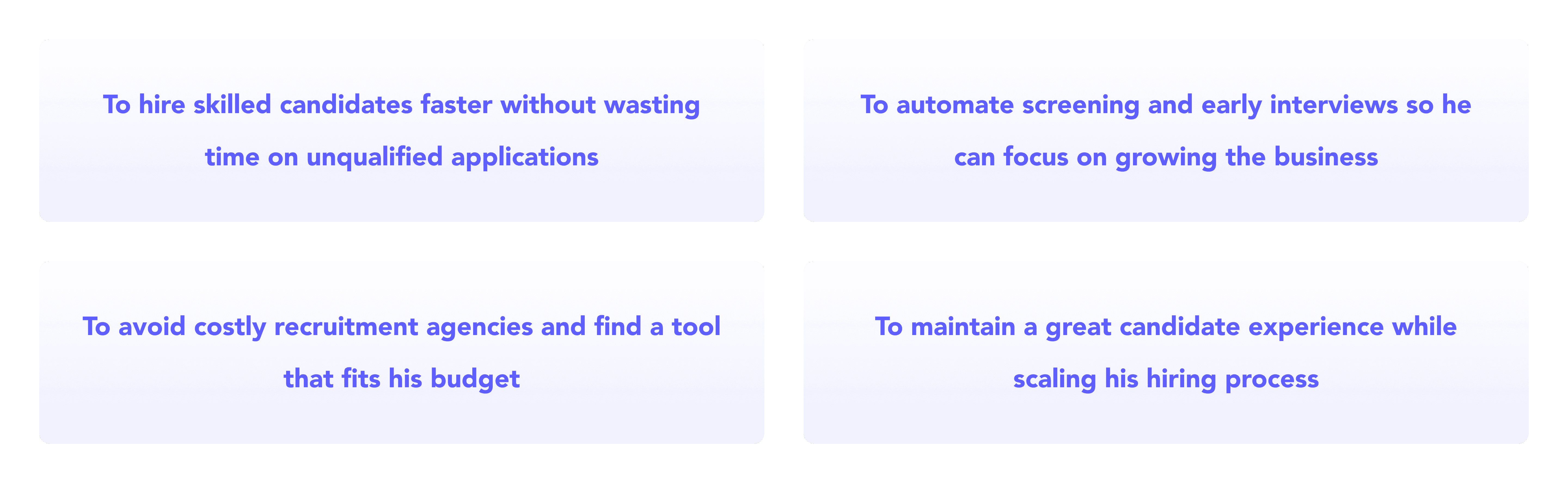 Growing businesses often lack the time and resources to manage complex hiring processes. They need a fast and cost-effective way to access high-quality talent without relying on traditional recruitment agencies or cumbersome HR tools.